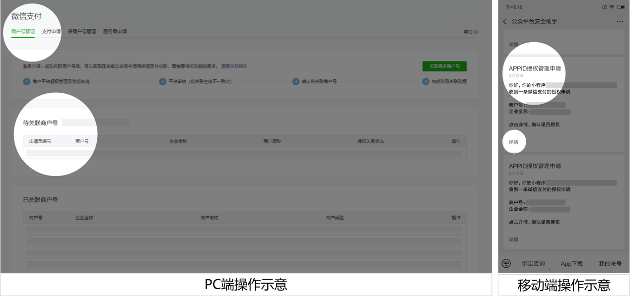 4. 發(fā)起授權(quán)申請后,商戶需自行前往對應(yīng)平臺確認(rèn)授權(quán)申請。
