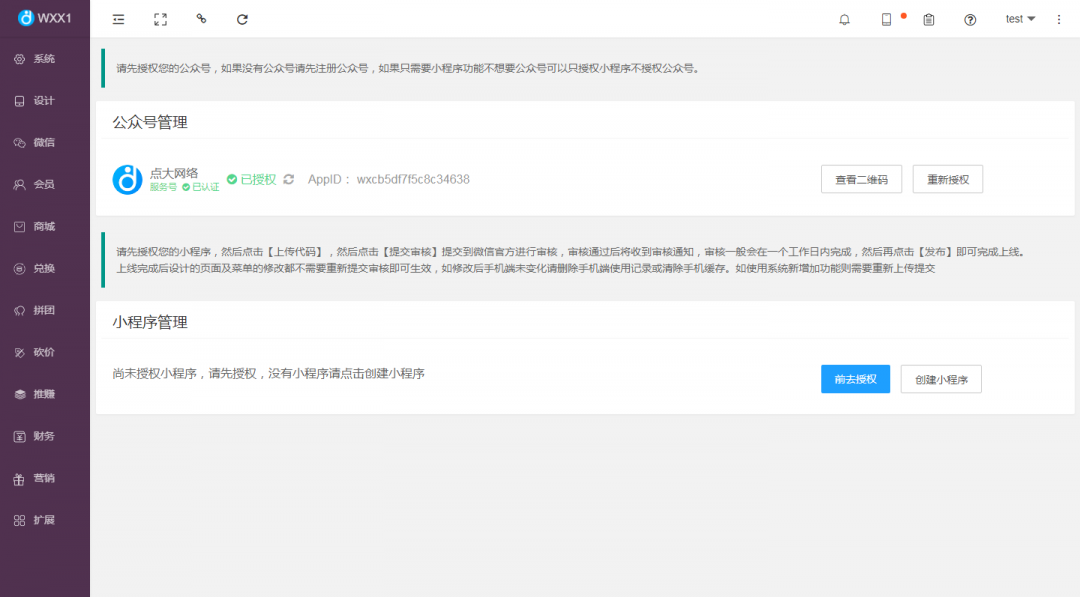 第三步:點(diǎn)擊授權(quán),即可授權(quán)完成,電腦端顯示授權(quán)的公眾號(hào)信息,授權(quán)完成后就可以在【微信】-【公眾號(hào)管理】及【公眾號(hào)設(shè)置中】管理您的微信公眾號(hào)了