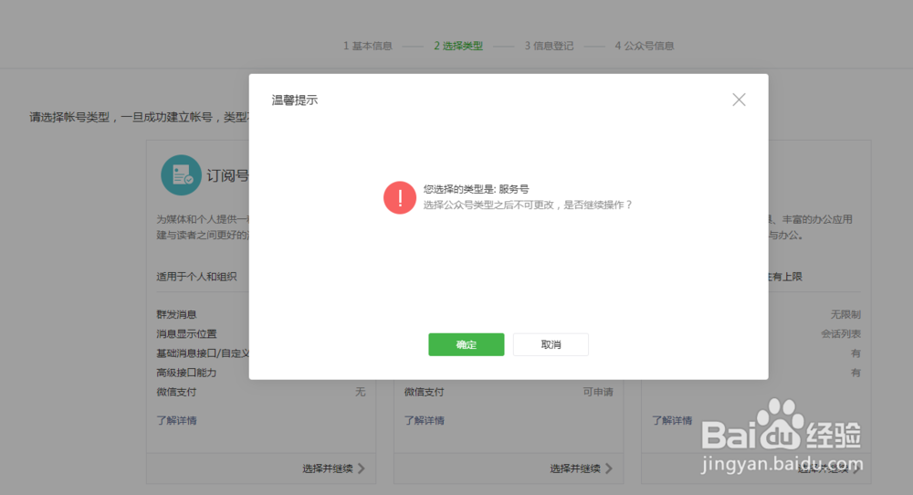 4、了解訂閱號、服務號和企業微信的區別后,選擇想要的帳號類型,點擊中間的服務號;