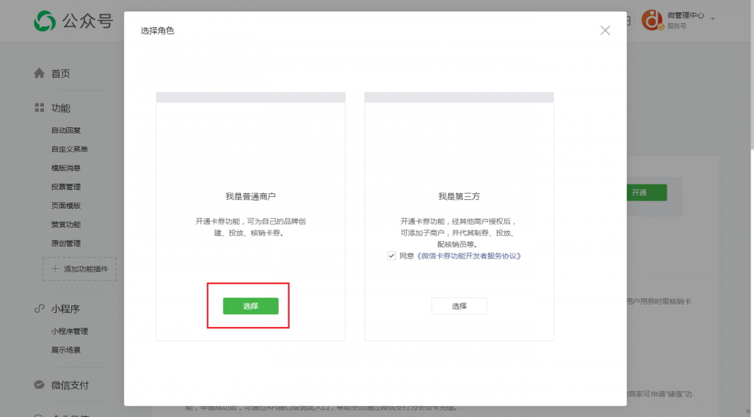 2、在[功能]-[添加功能插件]中找到[卡券功能],點擊進入