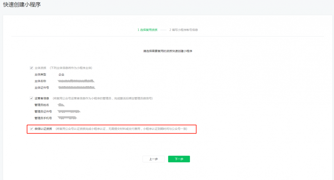 注:綁定管理員,如果有在第四步有勾選復用運營者信息。最終以綁定管理員信息為準。