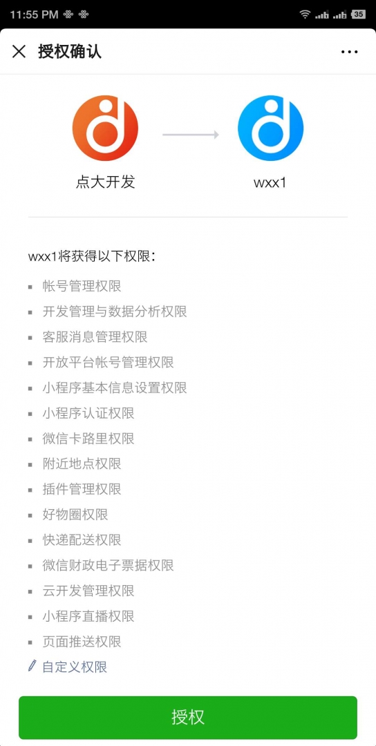 1、在管理后臺(wxx1.com)【微信】-【授權管理】中點擊前往授權